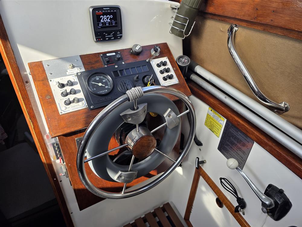 This is not a standard example. Major works include ballast replacement with lead ingots, drivetrain renewal, electrical refit, sail upgrades, and the installation of a bow thruster. She presents as a solid and thoughtfully improved coastal cruising yacht.