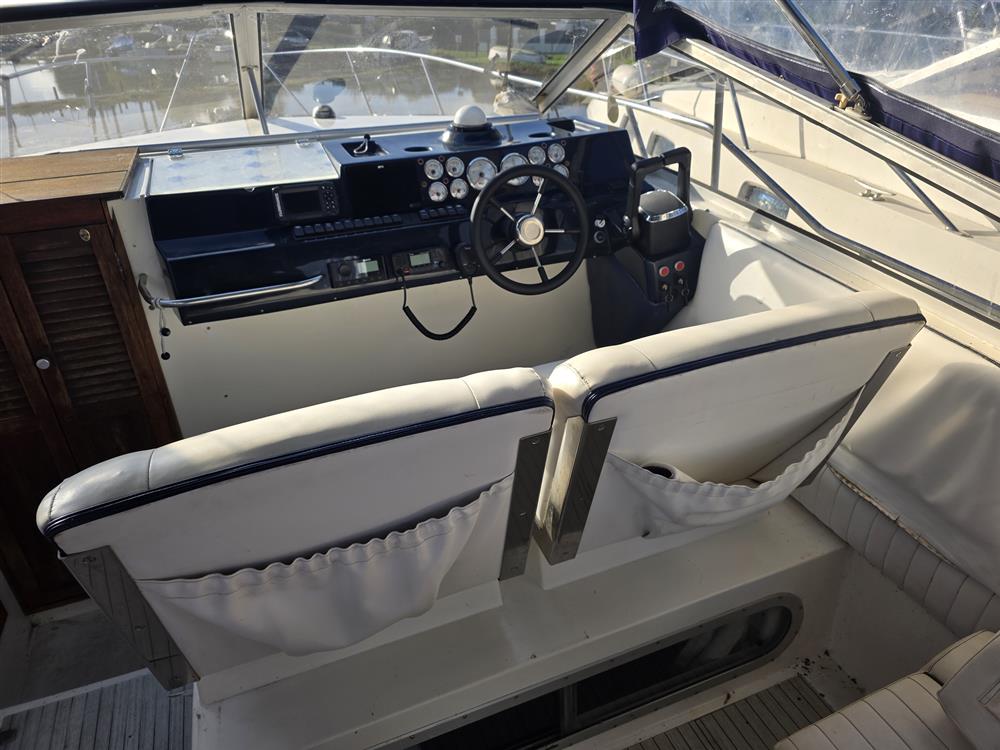 Origin Yachts are proud to present “Wild Affair Of Arne”, a timeless example of the Sunseeker 31 Offshore. This true British classic helped define Sunseeker’s reputation for performance and offshore capability. Built in 1983, she is powered by twin Volvo Penta AQAD40B diesel engines, producing 165HP each and delivering reliable performance with a cruising speed of approximately 20 knots and a top speed of around 27 knots.