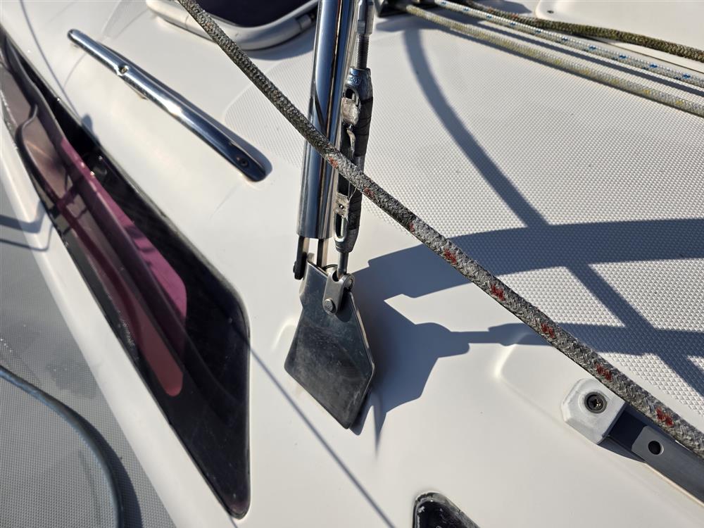 Below decks, she benefits from a bright and airy interior with generous headroom, two private cabins, and a spacious saloon, providing comfortable accommodation for family and guests.