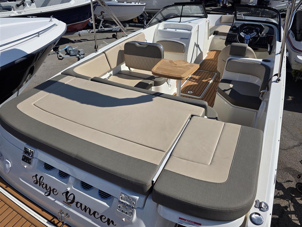 Origin Yachts are proud to offer “Sky Dancer”, a Bayliner VR6 bowrider, blending sporty performance with family-friendly versatility. Powered by a MerCruiser 4.5L V6 inboard petrol engine producing 250HP, she delivers an exhilarating top speed of around 45 knots and a comfortable cruising speed of 25–28 knots, sipping approximately 25–30 litres per hour at cruise. The VR6’s innovative design maximises space and comfort, offering a spacious bow seating area, deep freeboard for safety, and a well-appointed cockpit. She features a heads compartment with a cuddy space for storage or changing, making her perfect for day trips and watersports. Included is an Extreme road trailer, bimini, camper cover, and cockpit covers for all-weather protection. The engine and drive have just been serviced, giving peace of mind for her next owner.